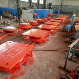 當橡膠支座承載水平荷載時,其橡膠層的相對側移大大 削減,使橡膠支座可到達很大的全體側移而不致失穩,并且堅持較小的水平剛度(僅為豎向剛度的1 /500―1 /1500)。橋梁減震隔震支座的規劃特色所謂減隔震支座規劃,是指經過安放減隔震支座,使橋梁在水平方向上得到柔性支承。
